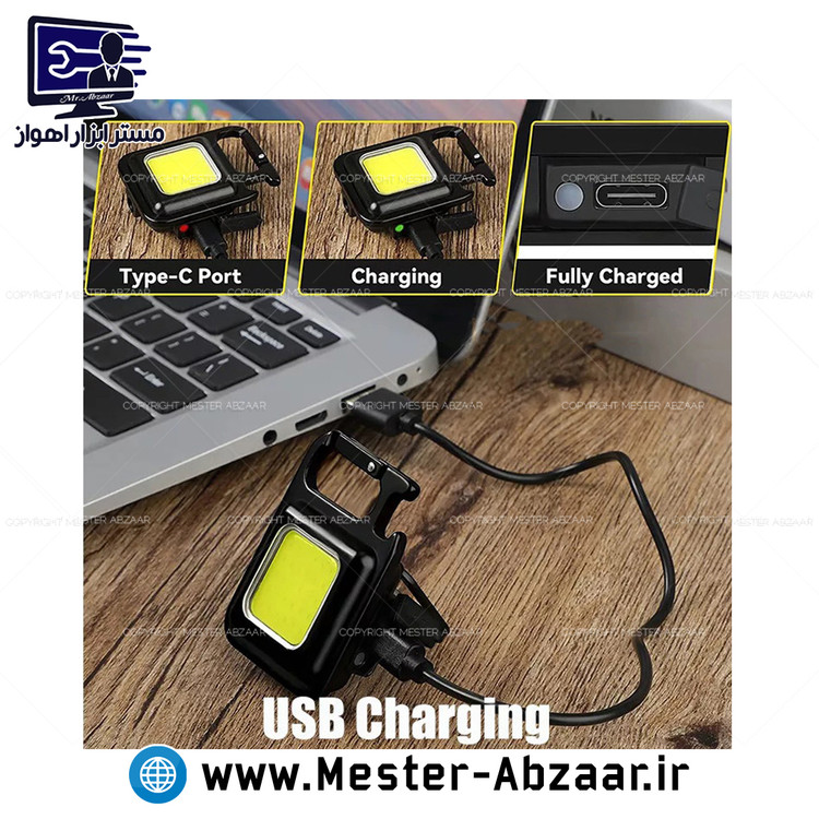 نور افکن و چراغ قوه شارژی چند کاره مربعی جیبی فوق قوی مسافرتی کیچان مدل KEYCHIN LIGHT MINI 45G