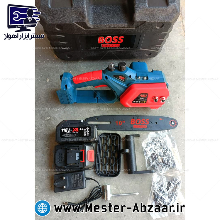 اره زنجیری شارژی ایزی استارت 1200 وات 30 سانتی برند باس با کیف و زنجیر مدل BOSS 10IN 118VF