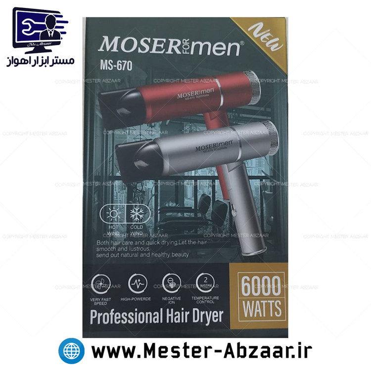 سشوار مسافرتی تاشو 6000 وات سرد و گرم موزر فور من مدل MOSER FOR MEN MS-670