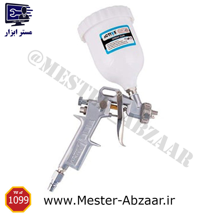 پیستوله بادی اکتیو AC-1099 محصول شرکت اکتیو است.مخزن این پیستوله پلاستیکی بوده و ظرفیت آن برابر با 600 میلی لیتر می باشد.فشار هوای در نظر گرفته شده برای این ابزار 50 بار بوده و سوزن و نازل آن در سایزهای 1.6 و 1.8 میلی متر می باشد.جنس نازل این دستگاه از آلیاژ برنج به منظور افزایش عمر و پوشش یکنواخت رنگ می باشد.مهره و دنباله این پیستوله امکان اتصال آن را به شلنگ باد فراهم می کنند.در این دستگاه رنگ پاش اماکن تنظیم پهنای پاشش رنگ و تنظیم میزان خروجی رنگ وجود دارد.