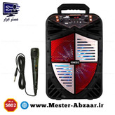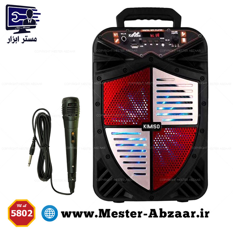 اسپیکر بیسیم QS-5802 از سری اسپیکرهای تولید شده توسط کمپانی کیمیسو است که به عنوان اسپیکر بی سیم روانه بازار شده است. این اسپیکر دارای قابلیت اتصال میکروفون است که با استفاده از این قابلیت میتوانید در میکروفون خود بخوانید و صدای خود را از این اسپیکر بشنوید. این اسپیکر بیسیم دارای باتری لیتیوم یونی قابل شارژ است. با استفاده از این باتریهای قابل شارژ میتوانید این اسپیکر را در هر زمان به هر مکان که مایل هستید به همراه خود ببرید و به موسیقیهای مورد علاقه خود گوش دهید. همچنین با هربار شارژ این اسپیکر نیز میتوانید تا ساعتها از پخش موسیقی لذت ببرید. اسپیکر QS-5802 دارای ورودی میکروفون است. با استفاده از این ورودی میکروفون میتوانید میکروفون خود را به این دستگاه متصل کنید و با استفاده از قابلیت کارائوکه به صورت یک اجرای زنده صدای خود را از اسپیکر بشنوید. همچنین میتوانید یک موسیقی بیکلام پخش کنید و روی آن بخوانید. اتصال به این اسپیکر به دو صورت باسیم و بیسیم امکانپذیر میباشد. اتصال بیسیم از طریق بلوتوث و اتصال باسیم از طریق AUX، USB، Line و Micro SD Card صورت میگیرد. بنابراین با هرکدام از روشهای اتصال، میتوانید به این اسپیکر متصل شوید و موسیقیهای مورد علاقه خود را پخش کنید. بر روی قسمت بالایی این اسپیکر، تعدادی دکمه و کنترلکنندههای چرخشی قرار گرفته است. با استفاده از این پنل کنترلکننده، میتوانید به کنترل مقدار صدا و همچنین میتوانید با استفاده از دکمههای تعبیه شده بر روی این پنل، پخش موسیقیهای خود را نیز در کنترل خود قرار دهید. در قسمت بالایی پنل کنترلکنندهی این اسپیکر، یک صفحه نمایش دیجیتال قرار گرفته است.