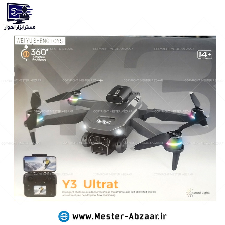 کواد کوپتر تاشو دوربین دار موتور براشلس کنترلی مدل Y3 ULTRA پهپاد هلی شات فیلم برداری عکاسی