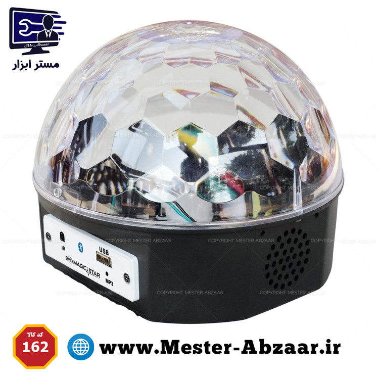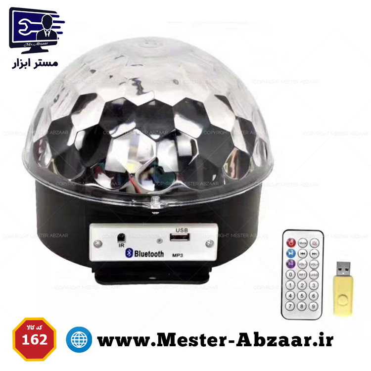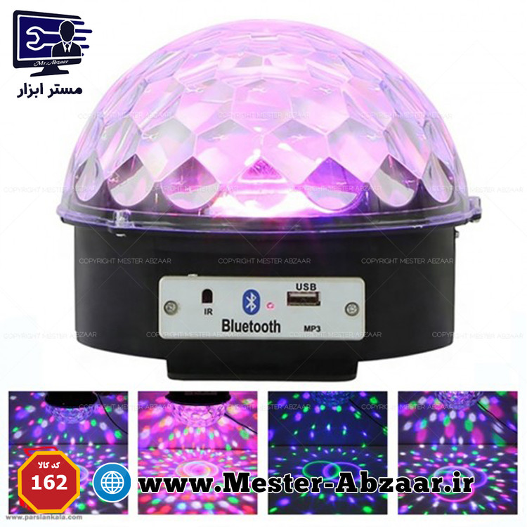 دستگاه رقص نور چرخشی خانگی دارای قابلیت پخش موزیک از طریق اتصال فلش به پورت usb و اتصال بیسیم از طریق بلوتوث می باشد. این دستگاه دارای 6 چراغ LED بسیار پر نور می باشد که توسط موتور چرخشی قرار گرفته داخل گوی کریستالی حرکت کرده و نورهای رنگی با طرح های زیبایی ایجاد می کند.