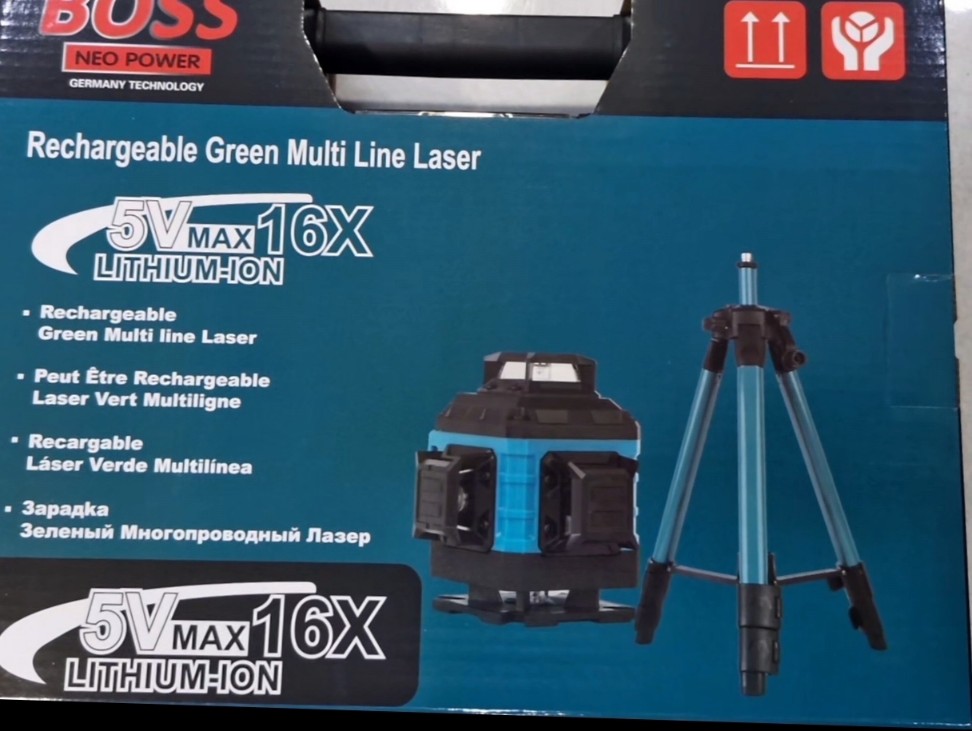 تراز لیزری ۱۶ خط 4 بعدی دیجیتال برند باس با سه پایه نور سبز شارژی ۳۶۰ درجه طرح ماکیتا ریموت BOSS NEO POWER 5Vmax 16X