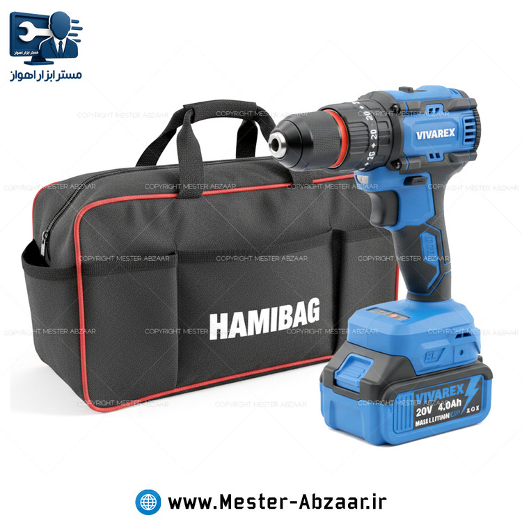 دریل پیچ گوشتی براشلس چکشی سه نظام فلزی شارژی 20 ولت 4 آمپر ویوارکس با گارانتی با کیف برزنتی مدل VIVAREX VR2410-IDK