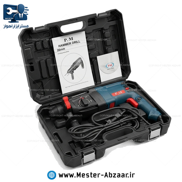 دریل تخریب بتن کن سه کیلویی 800 وات سه کاره پی ام با گارانتی کد 11253 مدل P.M PM-11253 آنکور