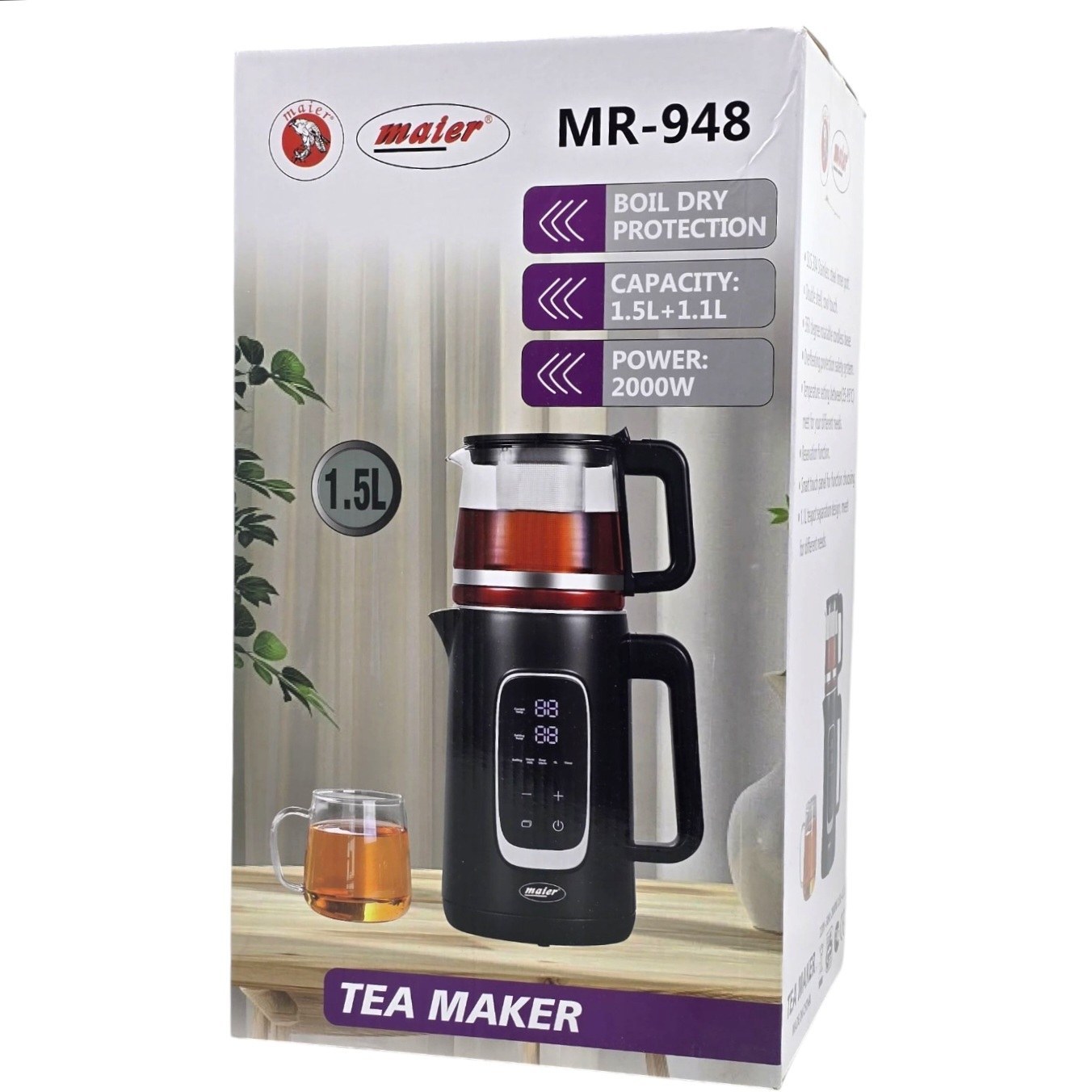 چای ساز دو طبقه 2000 وات 2.6 لیتری دیجیتال مایر مدل Maier MR‑948 روهمی