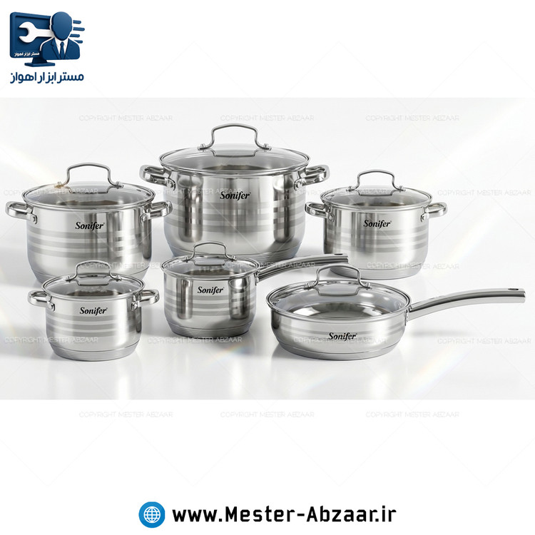 سرویس قابلمه 12 پارچه تمام استیل برند سونیفر درب شیشه ای SONIFER SF-1145
