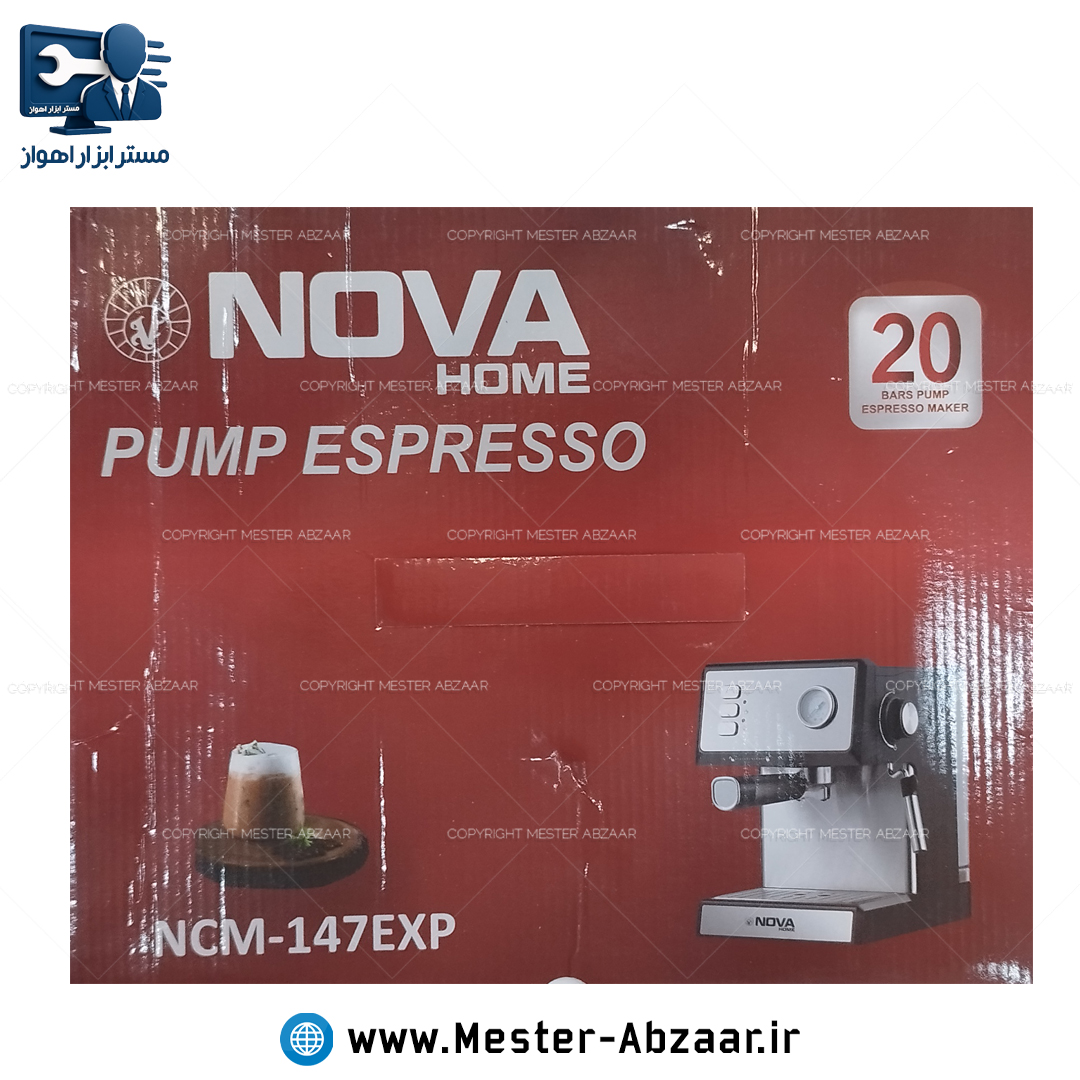 اسپرسو و قهوه ساز 1500 وات کد 147 پمپ 20 بار با هواگیری رایگان برند نوا هوم مدل NOVA HOME NCM-147EXP اسپرسوساز نووا هوم خانگی