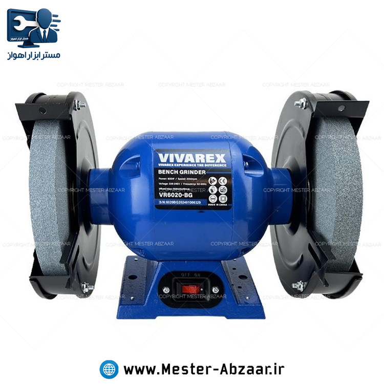 سنگ رومیزی 200 میلی متری 600 وات ویوارکس با گارانتی مدل VIVAREX VR6020-BG رو میزی سنباده