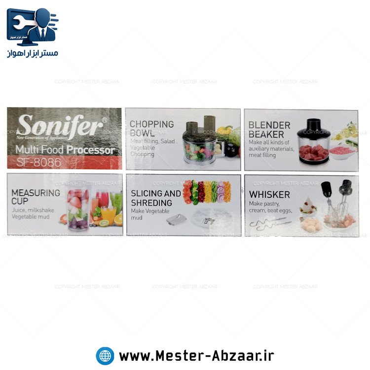 غذا ساز برقی 10 منظوره چند کاره 1000 وات سونیفر مدل SONIFER SF-8086 ( گوشت کوب - مخلوط کن - خرد کن - همزن و...)