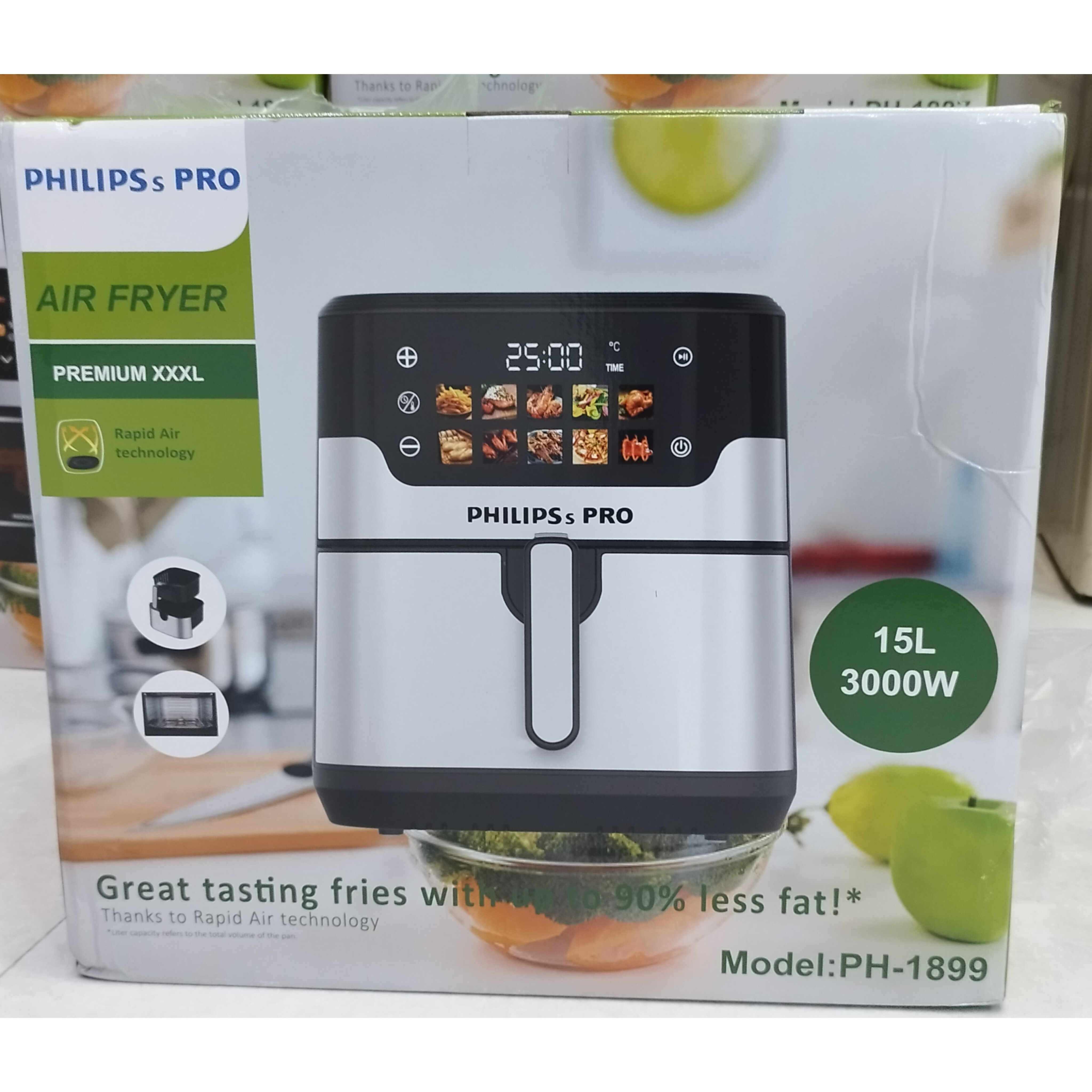 سرخ کن هواپز 15 لیتری لمسی دو ۲ المنت بدون روغن 3000 وات صفحه تخت فیلیپس پرو مدل PHILIPSs PRO PH-1899 بزرگ سرخکن همراه سبد جدا شونده صفحه رنگی