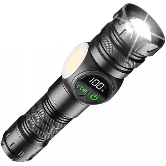 این چراغ قوه با باتری لیتیوم یون 26650 با ظرفیت بالا کار میکند که با پورت شارژ Type‑C بهسرعت شارژ میشود.