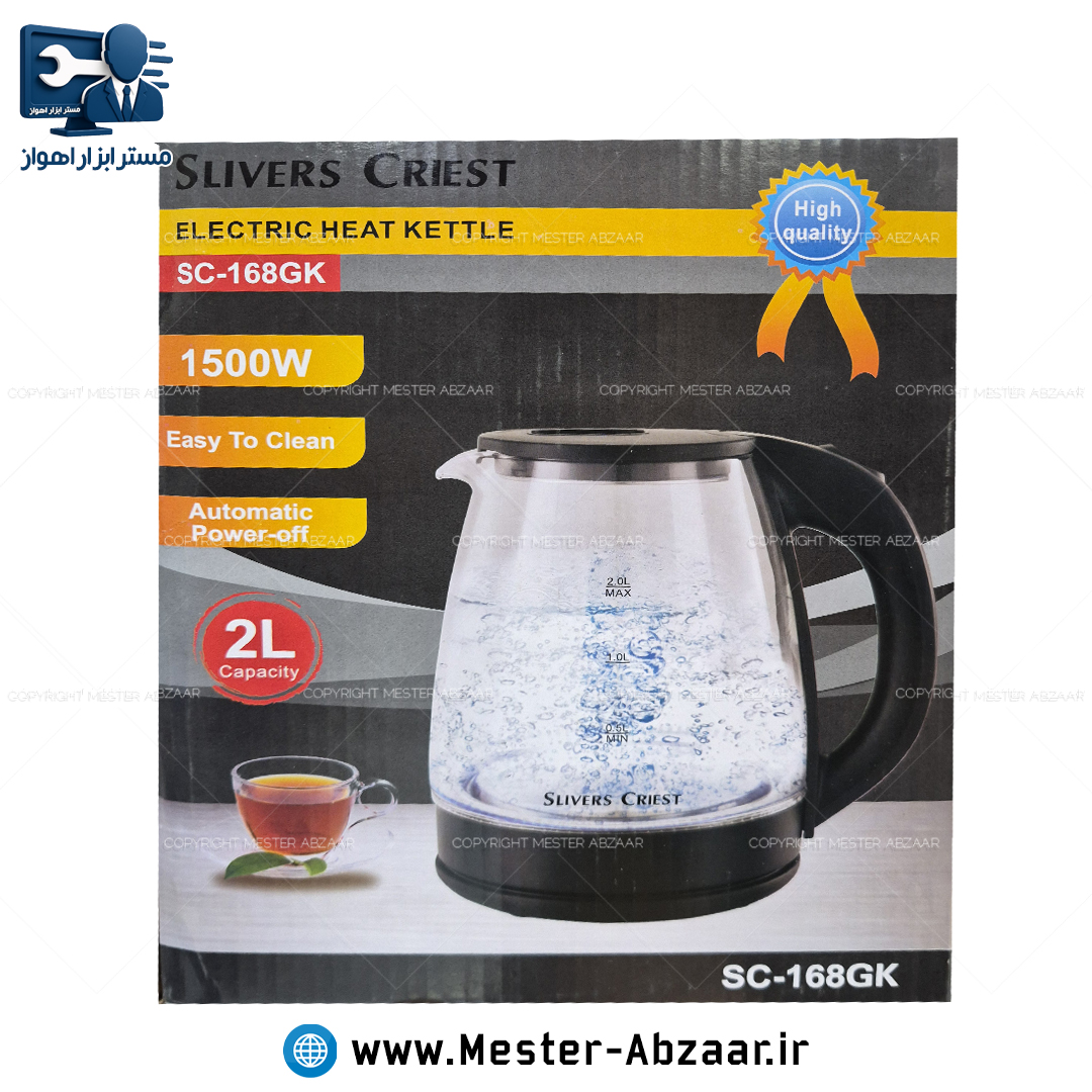 کتری برقی شیشه ای 2 لیتری 1500 وات طرح سیلور کرست مدل SC-168GK برند SILVERS CRIEST سیلورس کریست