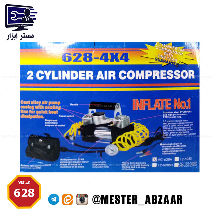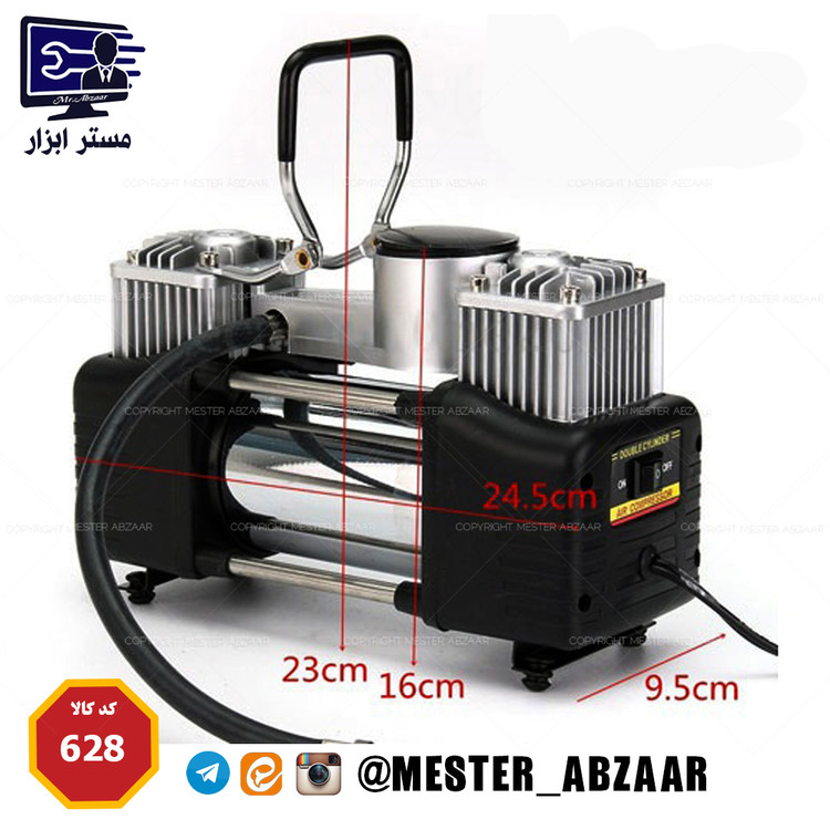 - شلنگ فنری - طول کابل برق فندکی: 2 متر - دارای پایه با قابلیت جذب لغزش - دارای قابلیت تامین انرژی از طریق فندکی و باتری خودرو - شدت جریان: 30 آمپر - وزن بستهبندی: 2440 گرم
